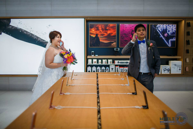 Jermyn Wee y Chia Suat Huang son dos aficionados de los productos de Apple que decidieron jurarse amor eterno en una de sus tiendas de Singapur.