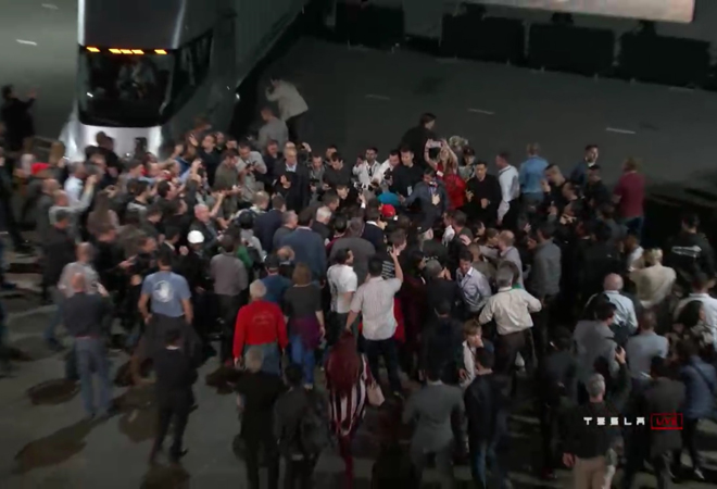 El auto salió del remolque del otro lanzamiento que hizo Musk, un camión de carga llamado Semi.