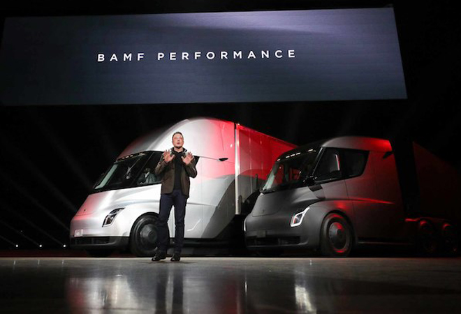 El Semi se parece a los tráileres que ves por las carreteras, pero tiene cuatro motores y Musk promete que incluso si sólo se usan dos de ellos, será más veloz que un camión de carga a diesel.