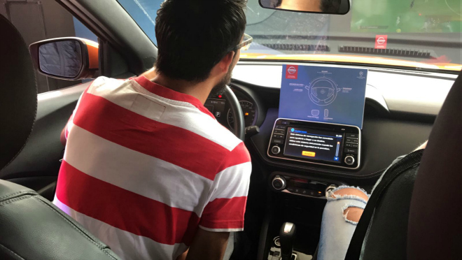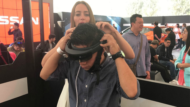 Entre las dinámicas está una de realidad aumentada (o Mixed Reality, como lo llaman los de Nissan), en la que los jugadores se montan gafas de VR en una cancha con obstáculos.