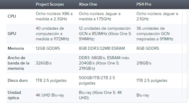Project Scorpio tendrá 12GB de memoria RAM tipo GGDDR5 (de la clase más rápida del mercado) y una tarjeta gráfica de hasta 1,172 MHz.