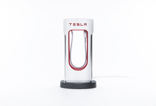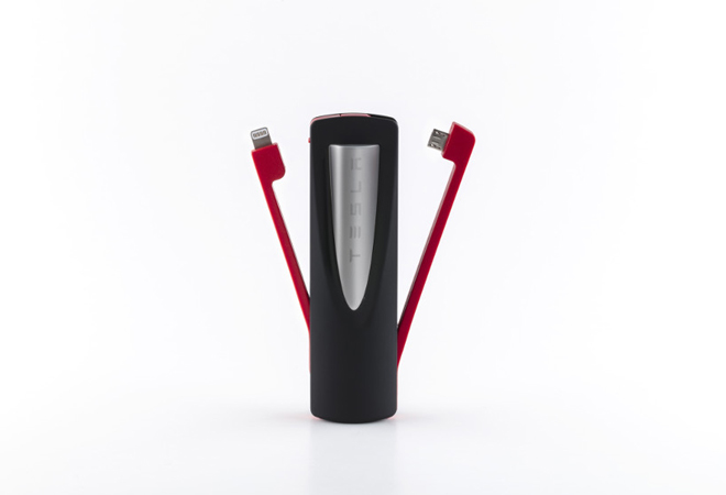 La batería de 3,350 mAh luce como una de las estaciones Supercharger en las que los propietarios de un Tesla pueden recargar la batería de sus autos.